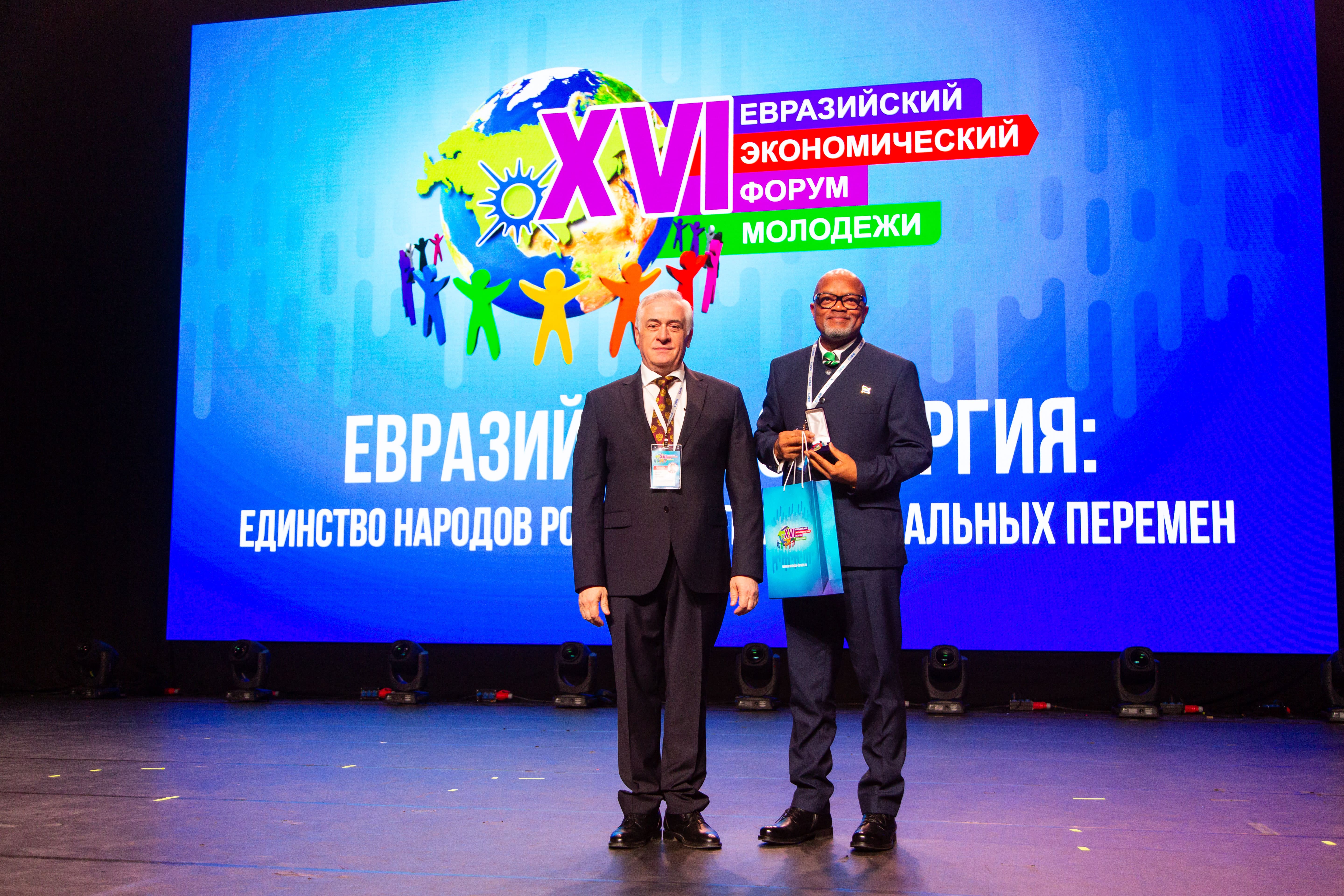 Many countries have been collaborating with USUE within the Eurasian Economic Forum for several years. University rector Yakov Silin presented the award “For Long-Term Cooperation with EEYF” to Mohamed Yongawo, Ambassador Extraordinary and Plenipotentiary of Sierra Leone to the Russian Federation.
