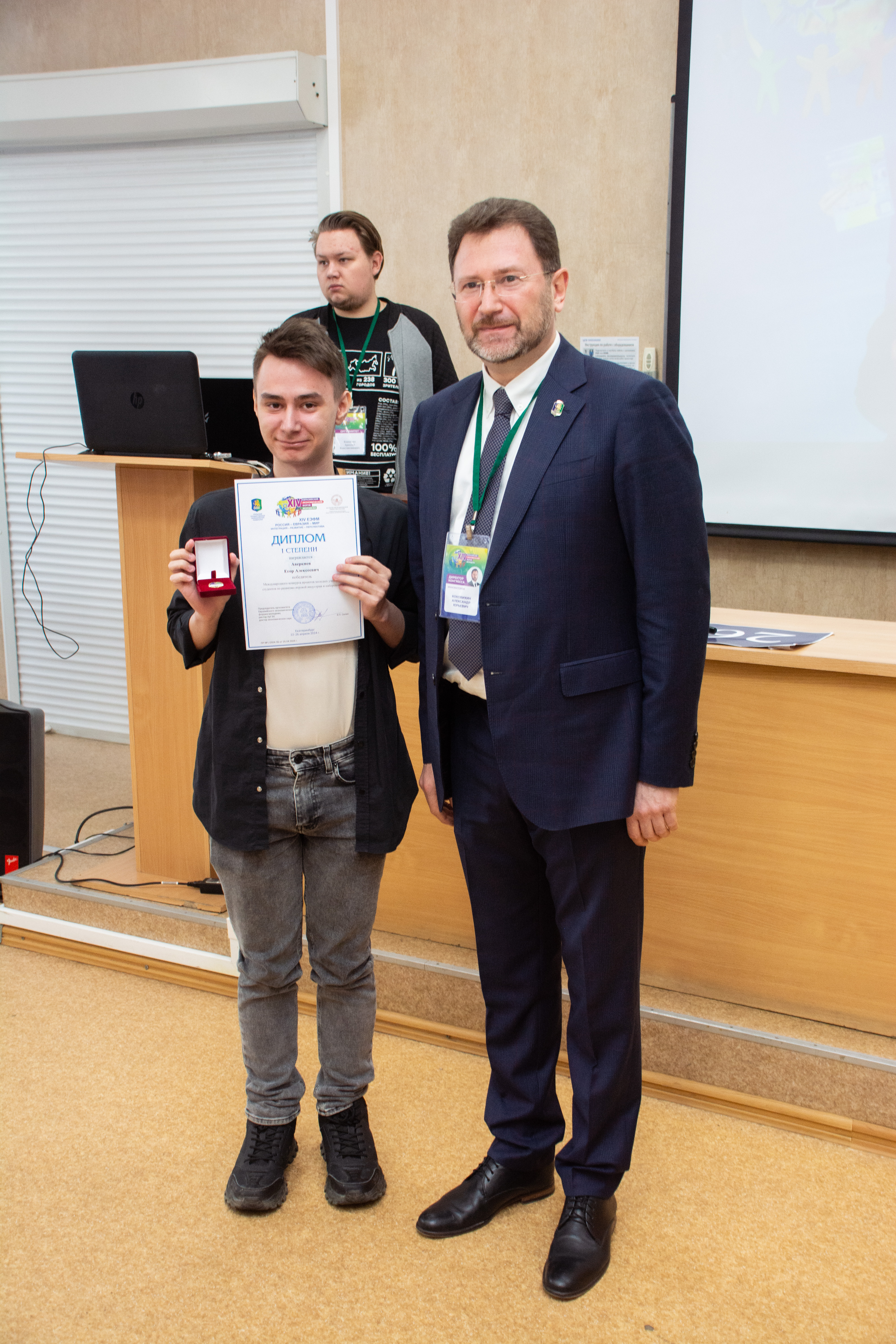 Кроме того, Александр Коковихин наградил победителя Турнира по компьютерному спорту «Евразия Киберспорт 2024» в дисциплине «Стратегия в реальном времени («StarCraft II»)». Им стал Марсель Саяпов, студент УрФУ;