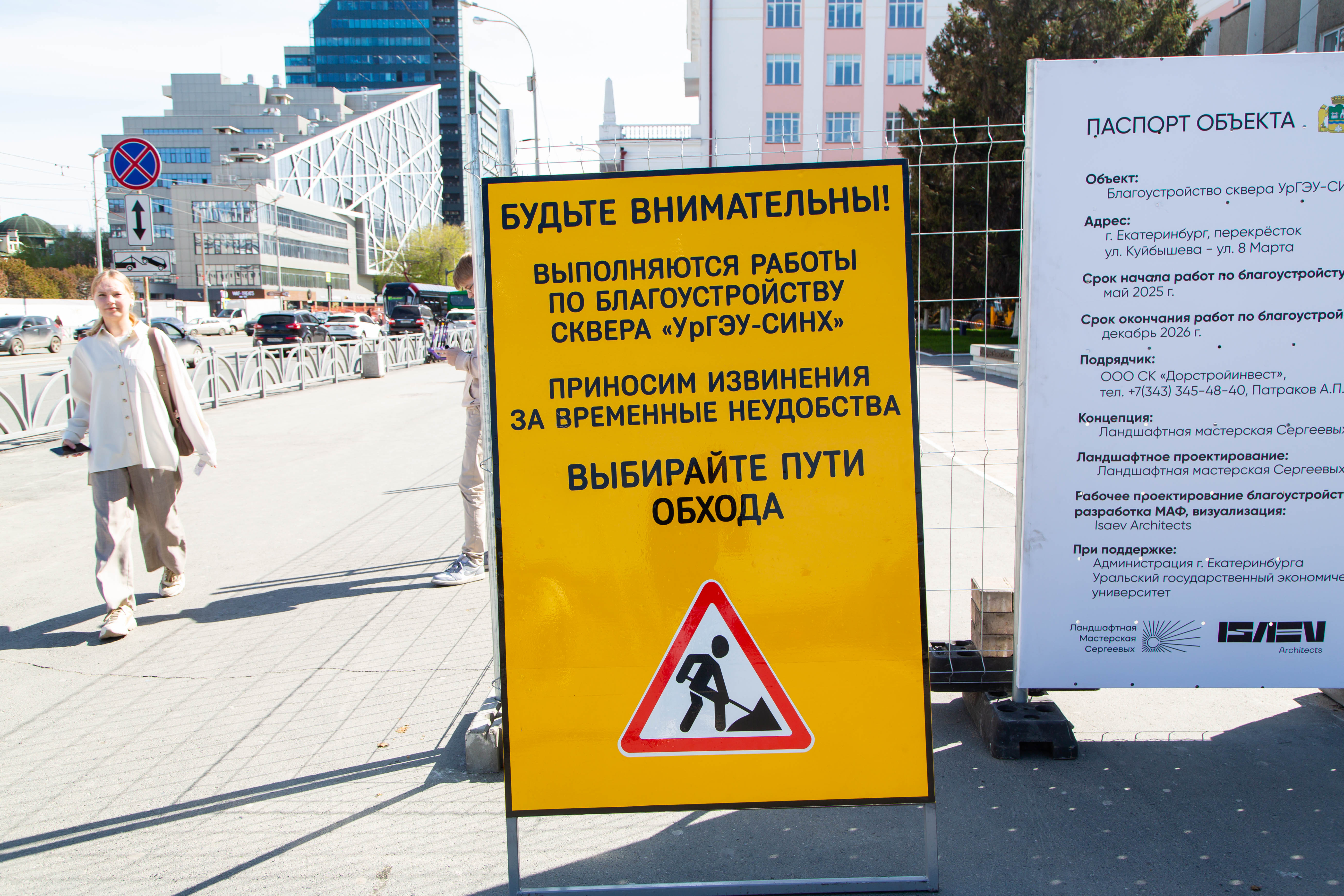 Work has begun on creating a modern park near the Ural State University of Economics at the intersection of 8 Marta and Kuibysheva Streets. The area near the university has already been fenced off, and construction equipment is working on the site.
