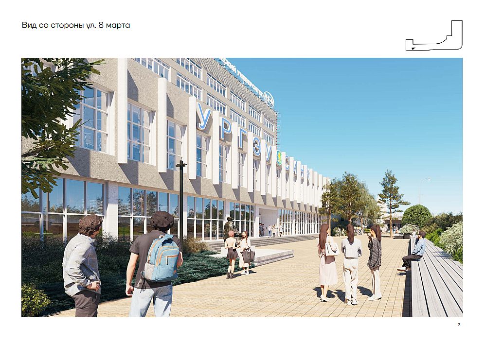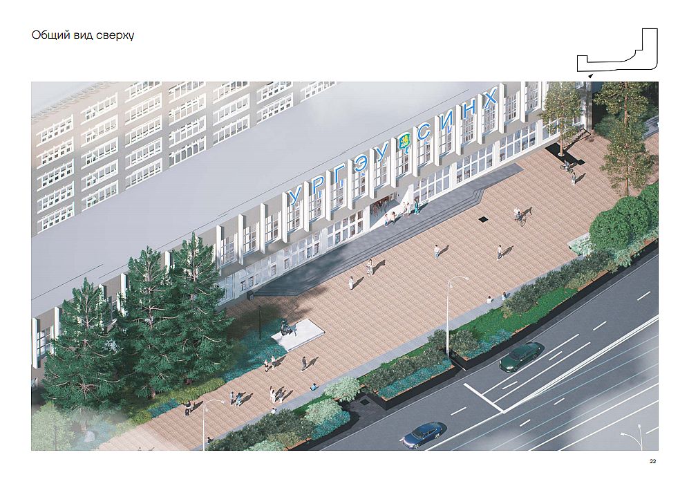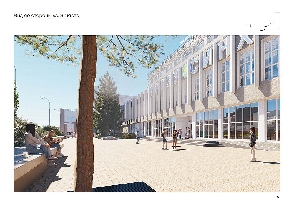 The improvement project was developed taking into account all modern requirements for the urban environment. It is aimed at creating a comfortable territory that meets the needs of students, university staff and residents of Yekaterinburg. Particular attention is paid to the natural, architectural, environmental and socio-cultural aspects of the territory's development.